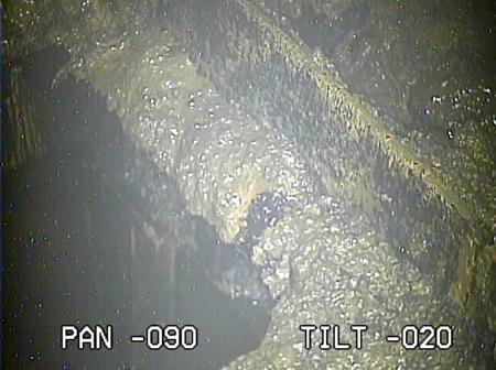 製の格子状の足場にデブリとみられる堆積物がこびりついている様子や足場の一部がなくなっている状況が判明した。